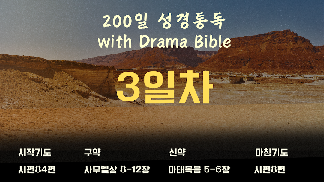드라마 바이블과 함께하는 성경통독 3일차 입니다. 시작기도 - 시편 84편 구약읽기 - 사무엘상 8-12장 신약읽기…